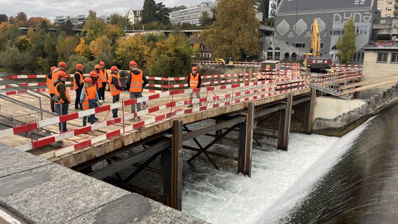 Im Oktober besuchten die Mitarbeitenden des Fachbereichs Wasserbau im Rahmen des Fachbereichsausfluges die Baustelle der Erneuerung des Platzspitzwehrs.