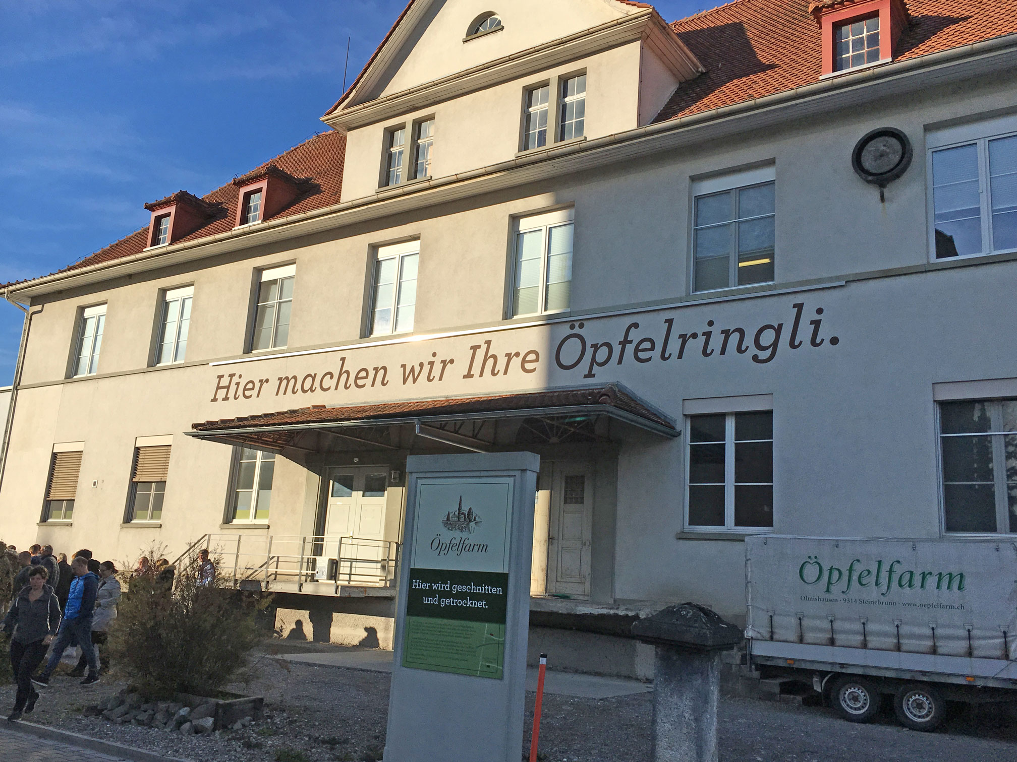 Wir besammelten uns vor dem stattlichen Gebäude der Öpfelfarm.